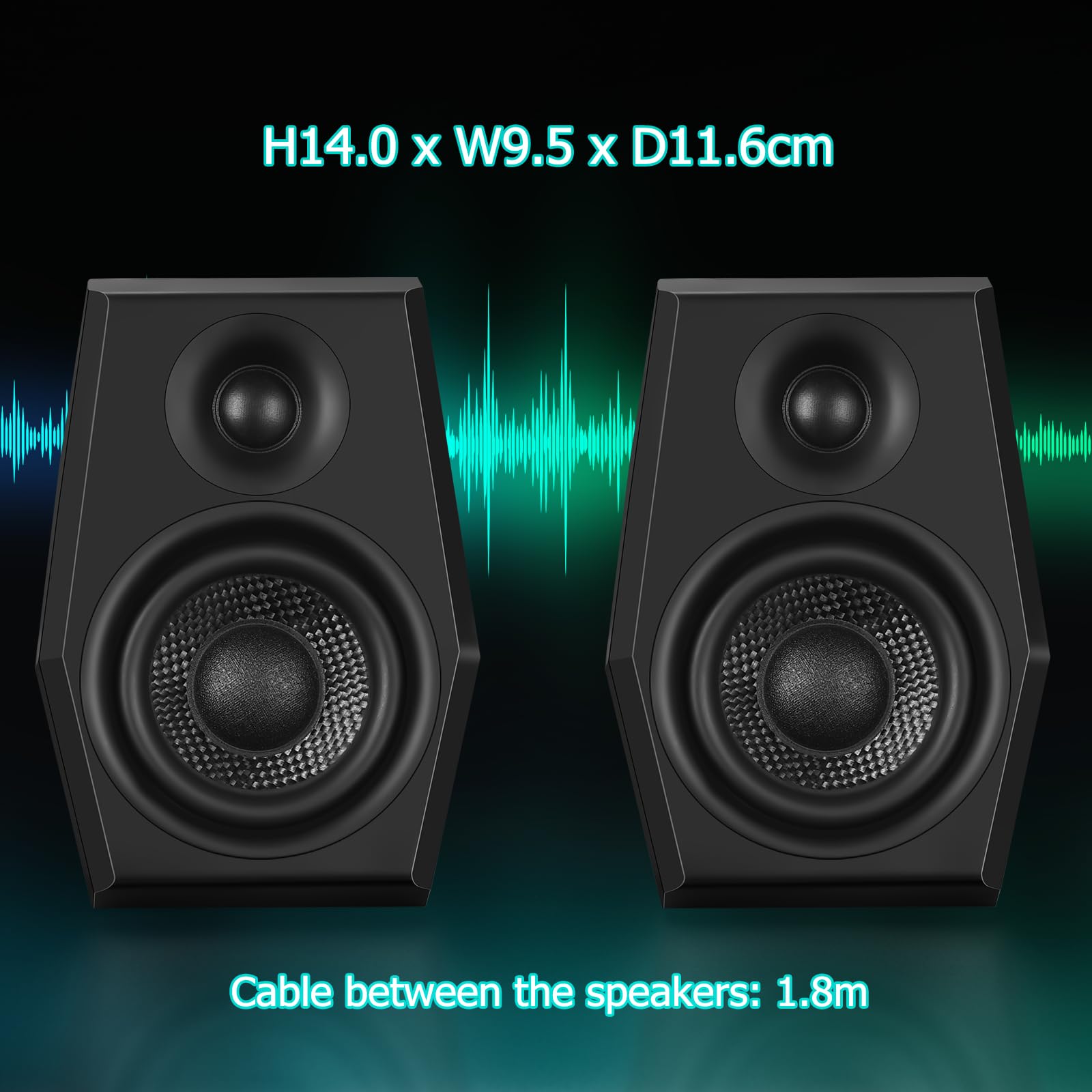 - 【Überragender Klang】 2.0-HiFi-Gaming-Computerlautsprecher mit 3-Zoll-Glasfaser-Mittelbass-Lautsprechereinheit und 18-Kern-Seidenfilm-Hochtöner, 36 W Gesamtspitzenleistung für eine unübertroffene Klangqualität.