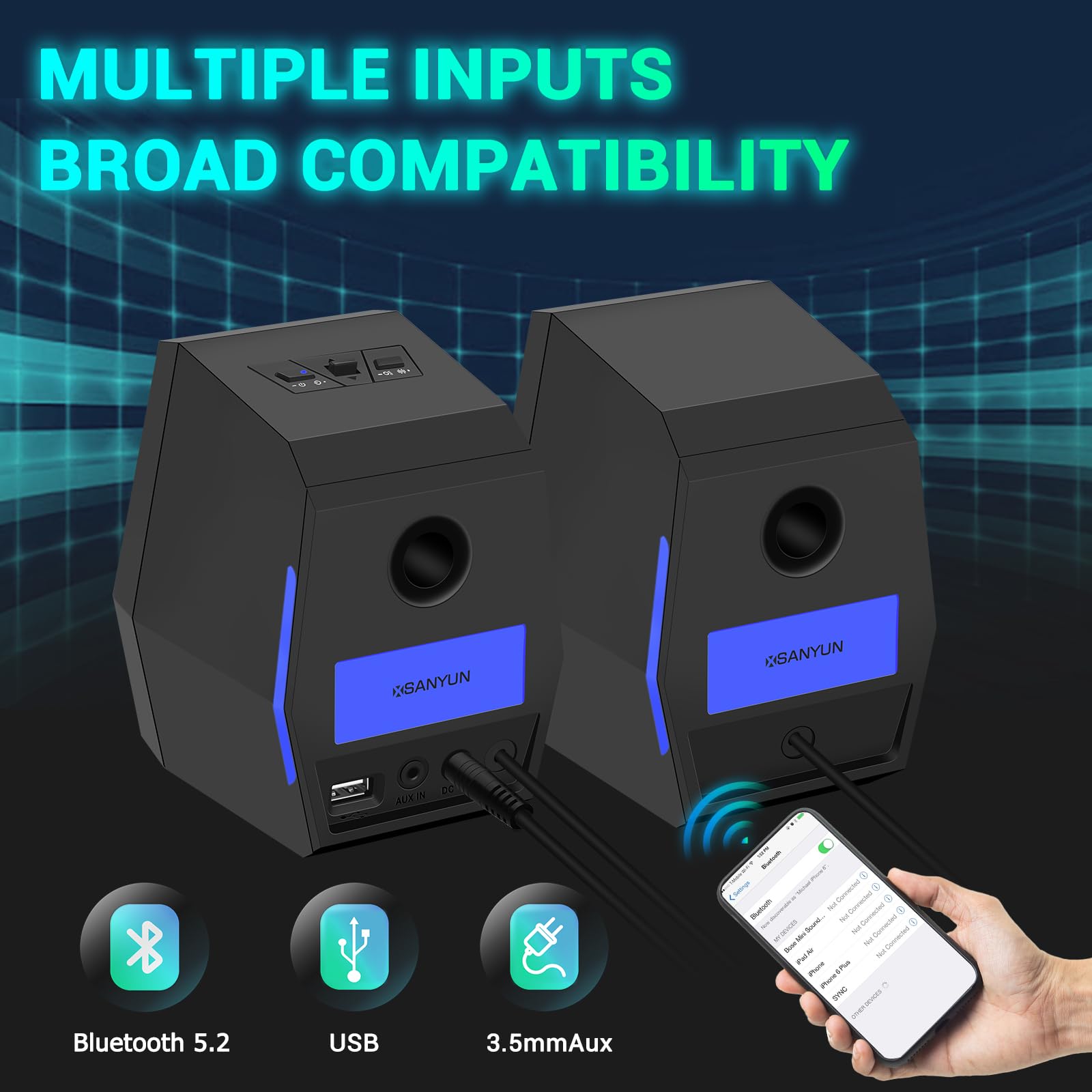 Sanyun SW209 36W 2.0 Computer Gaming PC Multimedia Lautsprecher, Mehrfacher EQ-Sound-Modus, Bluetooth 5.0 USB 3.5mm Aux Eingänge, RGB-Leuchten, für Laptop Desktop Monitor (Paar, Schwarz)
