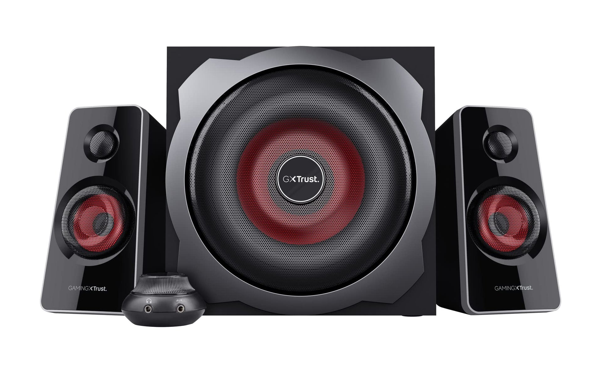 Trust Gaming GXT 38 2.1 Gaming Lautsprechersystem mit Subwoofer (für Smartphone/PC- Tablet, 120 Watt), 19023, Schwarz/Rot